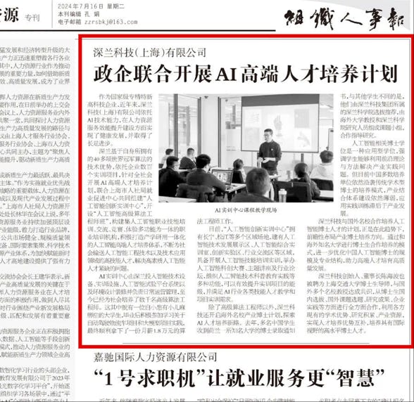 深兰教育助力残疾人学员获得 AI算法岗位获得上海市委报纸《组织人事报》报道